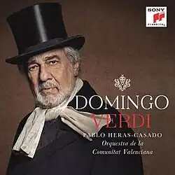 Verdi is a 2013 album of baritone arias by the 72-year-old Plácido Domingo, returning to the baritone register of his youth. The album, the first collection of baritone arias by the singer, was released by Sony Classics on 27 August 2013.[1] Domingo is accompanied by the Cor de la Generalitat Valenciana and the Orquestra de la Comunitat Valenciana conducted by Pablo Heras-Casado. The album won a Latin Grammy in 2014 for Best Classical Album.