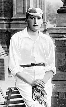 Vernon Hill initially attended Rev. J Cornish's School at Clevedon where he was a contemporary of Lionel Palairet.[5] He went to Winchester College in 1884, was in the second eleven in 1886 and the first eleven from 1887 to 1889. At Winchester he was mainly known as a bowler.[6] In these years he made appearances for the College against Eton. He went up to Oriel College, Oxford, in 1889.[7] He played four games for Somerset in their undefeated summer of 1890, aged just 19, helping them regain first-class status. In the following 1891 County Championship, he appeared in nine of the county's twelve matches, also playing one match for Oxford University against Oxfordshire. He played nine times in first-class university matches for Oxford in 1892, under the captaincy of his friend and Somerset teammate Lionel Palairet. It was while playing for Oxford in the Varsity match that Hill hit his first century, a 100-minute 114, adding 178 in a sixth wicket stand with Malcolm Jardine.[8] Hill played for Somerset again through the summer, scoring 224 runs in his 13 innings for the county.[9] In 1893, Hill played four more times for the University without making a notable impression on the scorecard.
