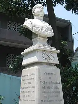 Vicente Nicolau de Mesquita (July 9, 1818, in São Lourenço, Portuguese Macau – March 20, 1880, in São Lourenço, Portuguese Macau) was an officer of the Portuguese Army in Macau. He is widely remembered for his role at the Portuguese attack of Baishaling,[1][2] in 1849. He was the oldest of the five children of noted Macanese lawyer Frederico Albino de Mesquita and Clara Esmeralda Carneiro – both Macau natives. He married twice: first to Balbina Maria da Silveira; second to his sister-in-law Carolina Maria Josefa da Silveira.