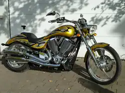 Debuting in 2006, the Jackpot is, in Victory's own words, an "extreme custom." It features the 100 cu in (1,600 cc) Freedom V-Twin engine and 6-speed transmission (later bikes feature the 106 cu in), a 250 mm rear tire, a color-matched frame and extensive custom styling with bold paint schemes. It is designed to be Victory's top-of-the-line custom.[19]