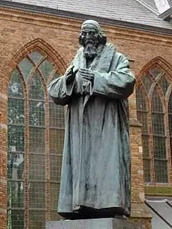 After World War II, Makovský focused primarily on creation of monuments. The ruling communist regime respected Makovský's efforts to connect architecture and public space in a valuable work. Among the best-known examples of his work from this period is the monument of Alois Jirásek in Litomyšl from 1959.[3]