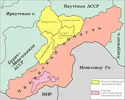 By the Resolution of the Organizing Committee of the Supreme Soviet of the RSFSR dated 21 September 1938, it was liquidated and its districts were transferred to the direct subordination of the Chita oblast.[5]