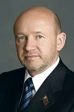 Vladimir Mikhailovich Platonov (Russian: Владимир Михайлович Платонов; born 24 December 1954 in Moscow) is a Russian politician who served as chairman of the Moscow City Duma from July 11, 1994, to September 24, 2014. Since May 26, 2016 he is the President of the Moscow Chamber of Commerce and Industry.