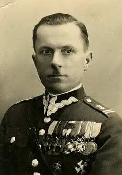 On 3 May 1922 he was promoted to Captain with seniority accompanying him from 1 June 1919 and the 281st place in the infantry officer corps.[18] On 10 July 1922 he was approved as the commander of the 3rd battalion of the 4th Legions' Infantry Regiment in Kielce.[19][20] On 31 March 1924, he was promoted to Major with seniority as of 1 July 1923 and 89th place in the infantry officer corps.[21] After being promoted to Major he was approved as commander of the battalion. On 25 October 1924, he was transferred to the Border Protection Corps as commander of the 11th Border Battalion.[22]