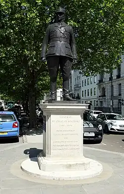 Memory of General Sikorski was also preserved both in Poland and abroad, by organizations like the Sikorski Institute in London.[5] In the UK, Sikorski received honoris causa degrees from the University of Liverpool and University of St Andrews.[5] In 1981, a commemorative plaque was revealed at Hotel Rubens in London,[5] where during the war Polish Military Headquarters, including Sikorski's office, were located.[41] He is commemorated in London's Portland Place, near the Embassy of Poland, with a larger than life statue, unveiled in 2000.[42] A propeller from the plane in which he died is the centrepiece of a new memorial to Sikorski at Europa Point, Gibraltar.[43]