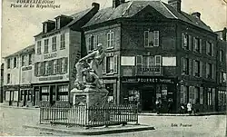 | Monument aux Morts at Formerie | Formerie. Oise | 1921 | This war memorial entitled "Coq modele D" features a gallic cock, a bronze marketed by Société Antoine Durenne throughout France beginning in 1921. There were two variations; the cock is either standing on a flat platform as in the Formerie memorial, or standing on a globe. The Formerie monument was inaugurated on 25 September 1921.[20] | |
