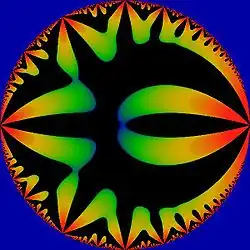 The imaginary part of the invariant g3 as a function of the square of the nome q on the unit disk.