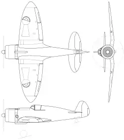 One prototype was made, which was completed by the end of 1940 and it bore V.501 as its serial number.[11] The prototype had a silver-grey colour with a smooth surface, and looked like a fast plane with an aerodynamic shape, hence it received the name "Ezüst Nyíl" ("Silver Arrow").[8] The exact date of the WM-23's first flight is not perfectly clear, but it was likely first flown between February and March 1941[8][24] (some sources say 23 February 1941, and this seems realistic).[25] During test flights it demonstrated very good acceleration and good flying characteristics, reaching a maximum speed of 530 km/h – significantly better than the 430 km/h maximum speed of the He 112Bs given to Hungary.[8][25]