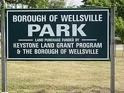 The Wellsville Borough Park is located in the town of Wellsville, Pennsylvania. The park is situated on and around the southwest corner of the intersection of Zeigler Road, York Road, and Main Street (Route 74); it is adjacent to the Wellsville post office. The park features benches, a gazebo, and small brick oven/grill structure.
