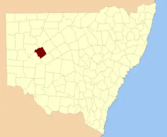 Warwick Cobar Shire 31°56′19″S 144°01′33″E / 31.93861°S 144.02583°E / -31.93861; 144.02583 (Warwick)