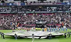 Their opening home game of the campaign came on 30 September to Rapid Wien. West Ham won the game 2–0 with goals from Declan Rice and Saïd Benrahma. Crowd violence marred the game, particularly after Rice's goal in the 29th minute, when Rapid Vienna fans jumped the barriers around the away supporters and objects were thrown between both sets of supporters.[107] The following month, West Ham were fined €60,000 by UEFA for the crowd trouble.[108]