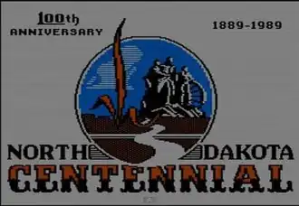 An opening screen of the game, indicating its release as part of North Dakota's centennial celebrations.