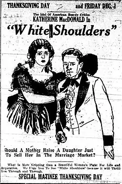 White Shoulders is a lost[1] 1922 American silent drama film starring Katherine MacDonald that was directed by Tom Forman. It was produced by B. P. Schulberg and released through Associated First National, later First National Pictures.[2]
