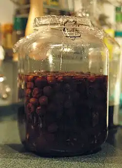 It can be purchased ready-made,[1] or made at home using just sour cherries, sugar and alcohol.[2] It is one of the most common and popular types of nalewka, usually made at the end of summer. Typically, the alcoholic content ranges from 30% to 50%.