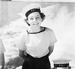 Following further discussion, one topic of debate being whether women would be required to work at nights before it was realised that this would overly limit their potential contribution to the war effort, the New Zealand War cabinet approved the establishment of the Women's Royal New Zealand Naval Service (WRNZNS) in April 1942.[1][3] The first director of the service was Ruth Herrick, with the rank of chief officer,[4] appointed on 18 May. King George VI conferred the service with royal status a few months later.[5]