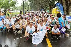 Leading "The Big Squat" during the Singapore "Urgent Run" 2016 is Jack Sim, front row left, founder of World Toilet Organization.