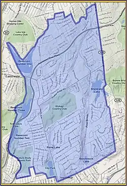 Wykagyl is a suburban community in New Rochelle, Westchester County, New York, United States. It is conterminous with ZIP code 10804, encompassing much of the city's 'North End'. According to Forbes, in 2010 Wykagyl's 10804 ZIP code, with a median home price of $806,264, ranked 333rd on its list of the 500 most expensive ZIP codes in the U.S.[1] The Washington Post ranks Wykagyl among the nation's 650 Super Zips, or those with the highest percentile rankings for median household income and the share of adults with college degrees or higher.[2]