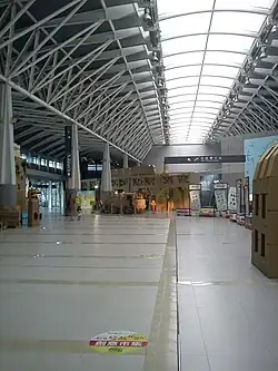 The station consists of a large building linked to the HSR station via a bridge. There are automatic ticketing machines and ticketing staff, shops, and restaurants within the building. Bus stations and parking facilities are shared with the HSR station.