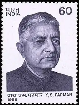 17. ^ "Y. S. Parmar | 04-08-1988 | Philcent #1366 SG # 1324, MJ No. 1155 | Stamps | Mintage World". www.mintageworld.com. Retrieved 26 October 2022.