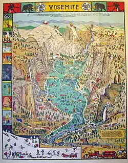 YP&CC played a significant role in the development of winter sports at Yosemite.[1] In 1935, the company completed the construction of Badger Pass Ski Lodge, which became California's first downhill ski area.[7] YP&CC also founded the Yosemite Winter Club and introduced the iconic Bracebridge Dinner, a seasonal event started in 1927 that became a hallmark of Yosemite's cultural offerings.[1][8]