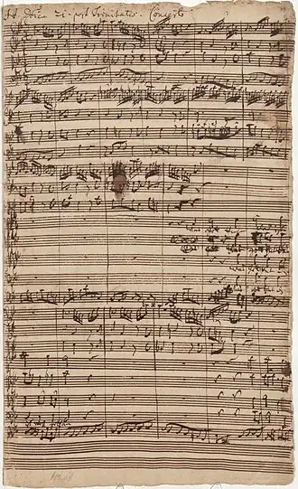 Opening choral movement of Bach's cantata Was Gott tut, das ist wohlgetan, BWV 98, autograph manuscript, 1726
