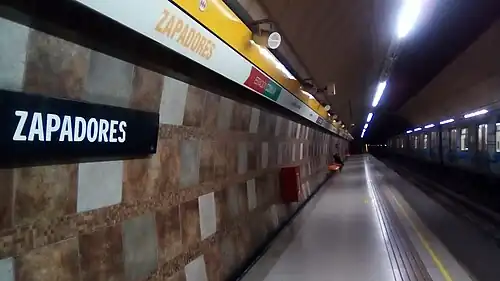Zapadores is an underground metro station on the Line 2 of the Santiago Metro, in Santiago, Chile. It is the last northern station of the Line 2 prior to reaching the Vespucio Norte terminus.[1] The station was opened on 21 December 2006 as part of the extension of the line from Einstein to Vespucio Norte.[1][2]