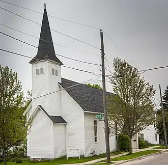 The Zion Evangelical Lutheran Church is a one-story Late Victorian frame structure with some Gothic Revival elements. The building has a front gable roof and a rectangular tower with a peaked polygonal cap. It has eight-pane rectangular windows with corniced heads set in to the side walls. A gabled entryway addition is at the rear of one side wall.[3]